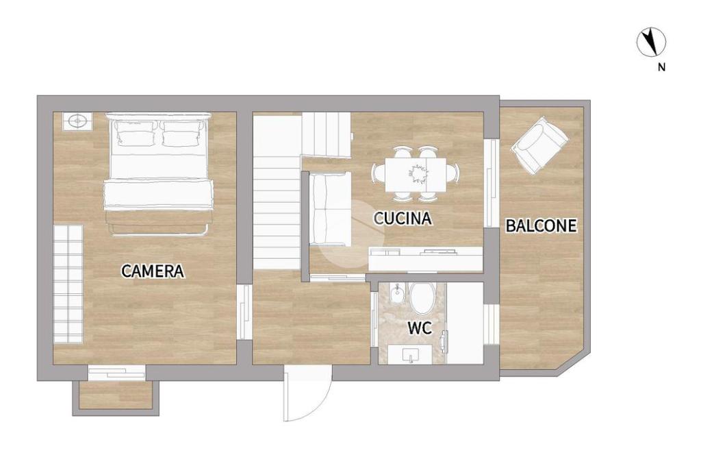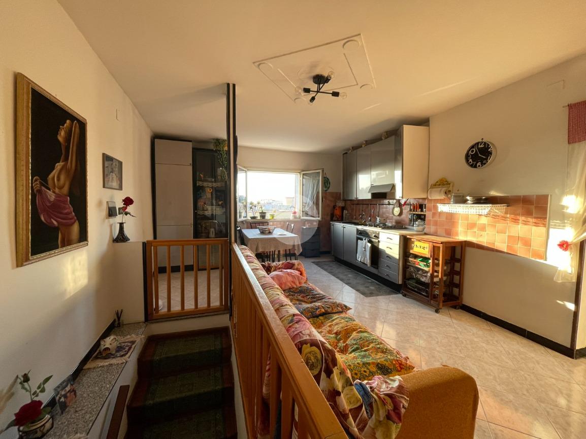 All’ingresso troviamo un comodo disimpegno che conduce alla luminosa cucina abitabile, dotata di uscita su un pratico terrazzino, perfetto per momenti di relax o colazioni all’aperto.