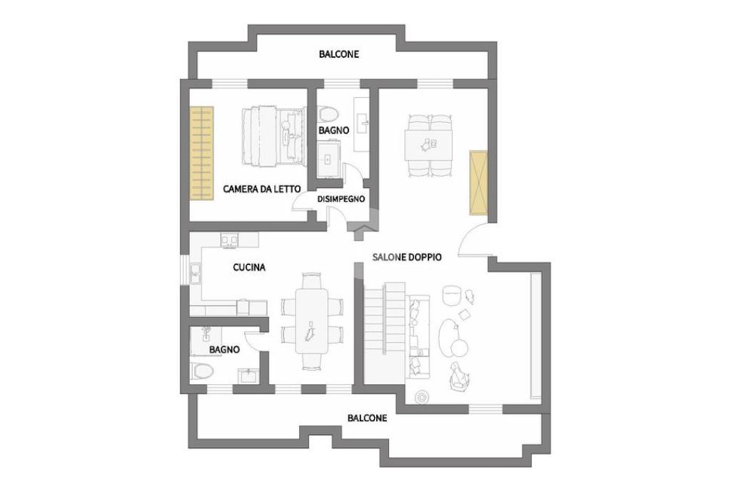 A completare la soluzione sono sicuramente i due balconi che donano alla casa una doppia esposizione.
