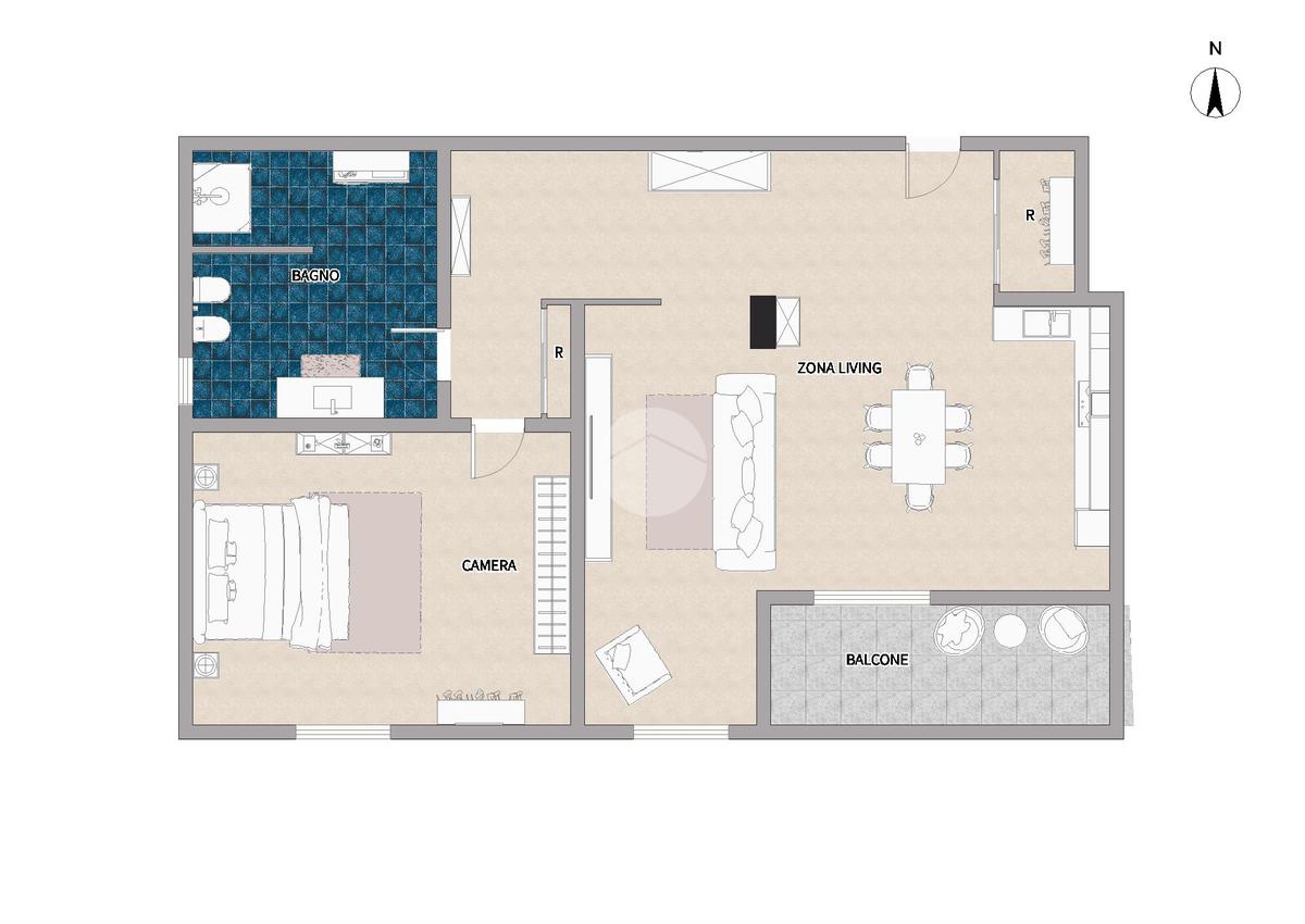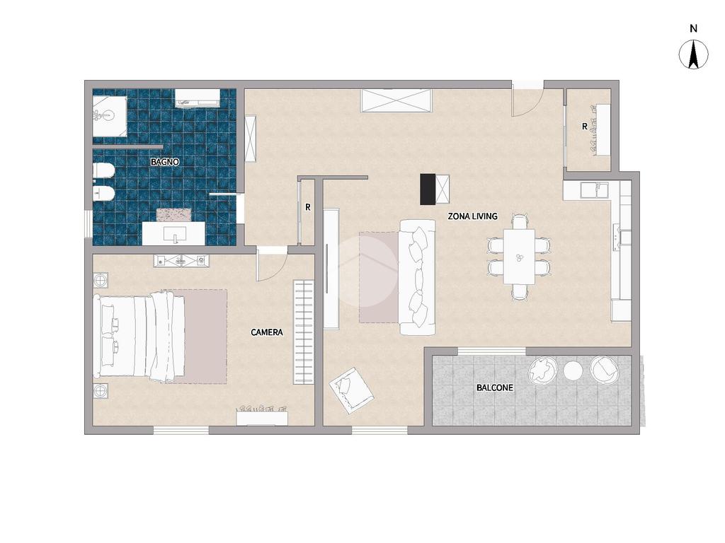 All'ingresso in casa veniamo accolti da una spaziosa zona living che è il cuore della casa, ideale per momenti di relax e convivialità, con accesso sul balcone.