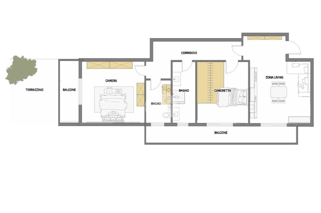 Il viale del parco, vi condurrà verso la Vostra nuova abitazione, situata ad un comodo piano rialzato.